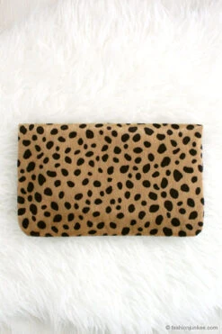 Foldover Cheetah Leopard Animal Print Faux Fur Clutch-Leopard Print