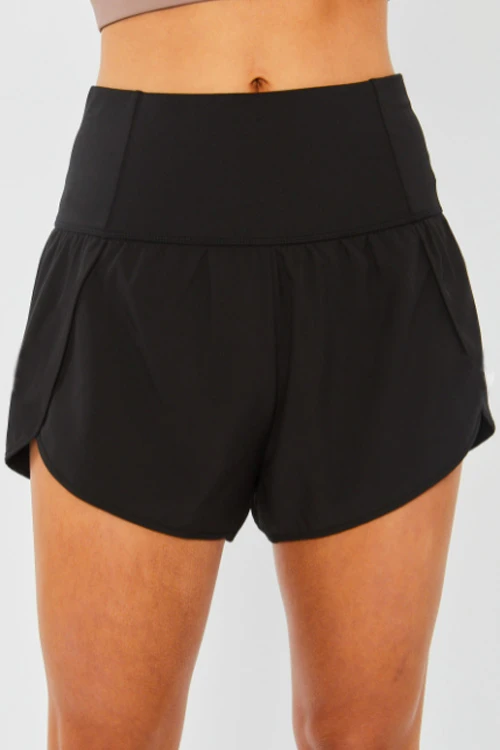 Running shorts that are both cute and functional! Super comfortable. Lightweight, moisture wicking fabric with 4 way stretch. Come with a zippered back pocket to hold your necessities. Ties at the waist (on the inside) for a perfect fit. Inner brief lining. Perfect for the gym or running errands around town. Pair these with a crop top for a cute look.