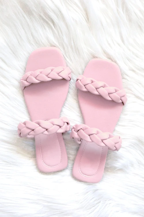 Two strap braided slides. Gorgeous woven bands across the top. Chic and beautifully detailed. An effortless and chic look.