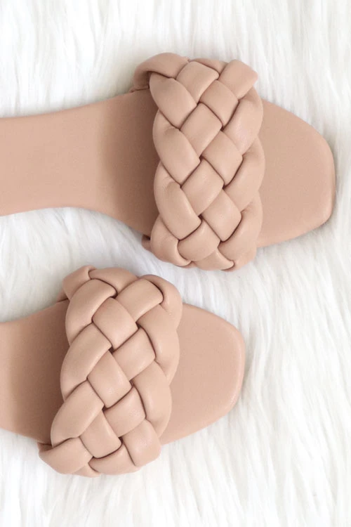 Braided slides. Gorgeous woven band across the top. Chic and beautifully detailed. Effortless and comfortable, and goes with any look!