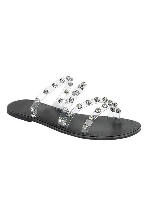 It’s all in the details! Fun strappy sandals. Clear straps with rhinestone details. Horizontal and diagonal straps. Solid colored sole. Super fun with gorgeous rhinestone detailing. You’ll love these! Grab a pair while it’s still available!