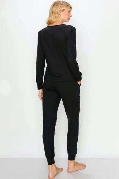 Be the first to review “DOOR BUSTER: Solid Long Sleeve Top And Joggers Pants Lounge Set (2 Piece Set)-Black” Cancel reply