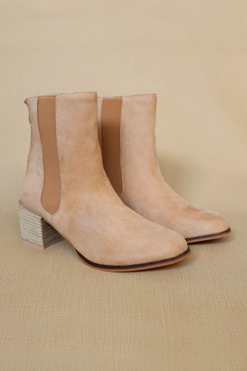 Tall booties with side elastic. Wooden block heel. Add some style to your fall look in these amazing boots!