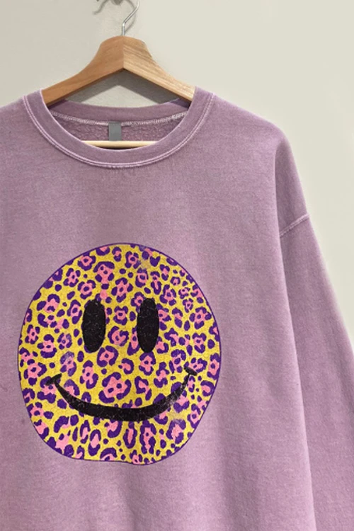 Be the first to review “Leopard Print Smiley Face Mineral Wash Sweatshirt Sweater-Purple Lavender” Cancel reply