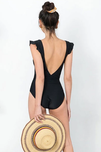 Be the first to review “Low Cut One Piece V-Neck Swimsuit With Ruffle Sleeves-Black” Cancel reply