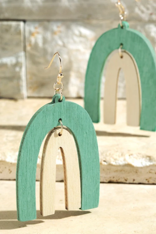 Retro rainbow arch wood earrings. Two tone. Complete your look with these adorable earrings.