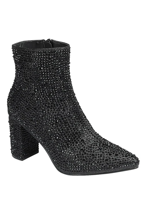 Rhinestone booties. Chunky high heel. Gorgeous rhinestone design all over both the boots and the heel. Inside zipper closure. Make a statement with these stunning boots.