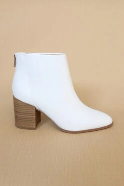 Faux Leather Closed Pointy Toe Block Heel Ankle Booties-White