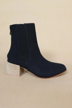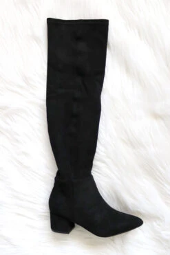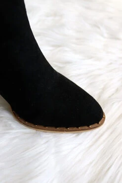Faux Suede Pointy Toe Closed Toe Block Heel Ankle Booties-Black