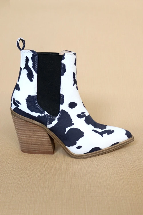 Be the first to review “Tall Ankle Booties With Side Elastic And Stacked Heel-Black And White Cow Print” Cancel reply